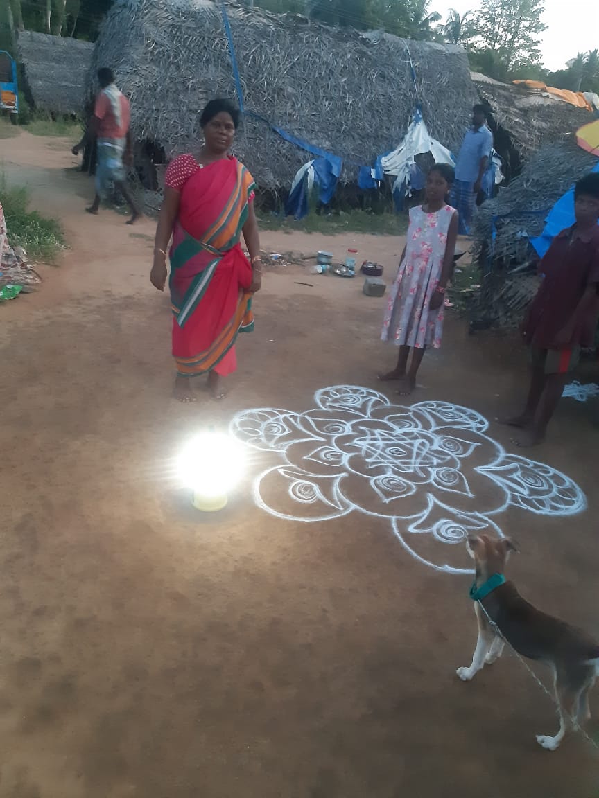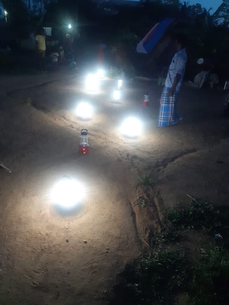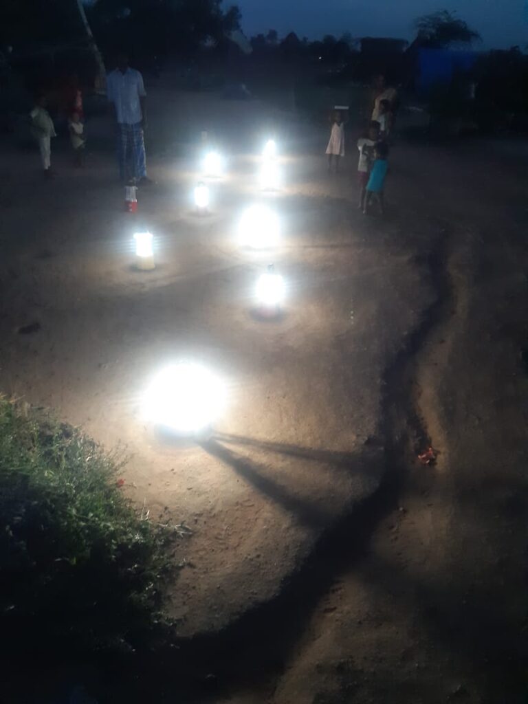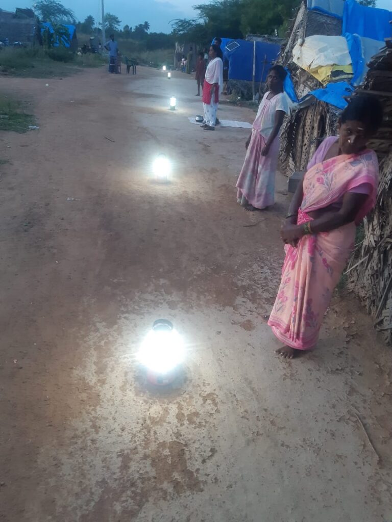 Solar lamps shining at Thandaram village